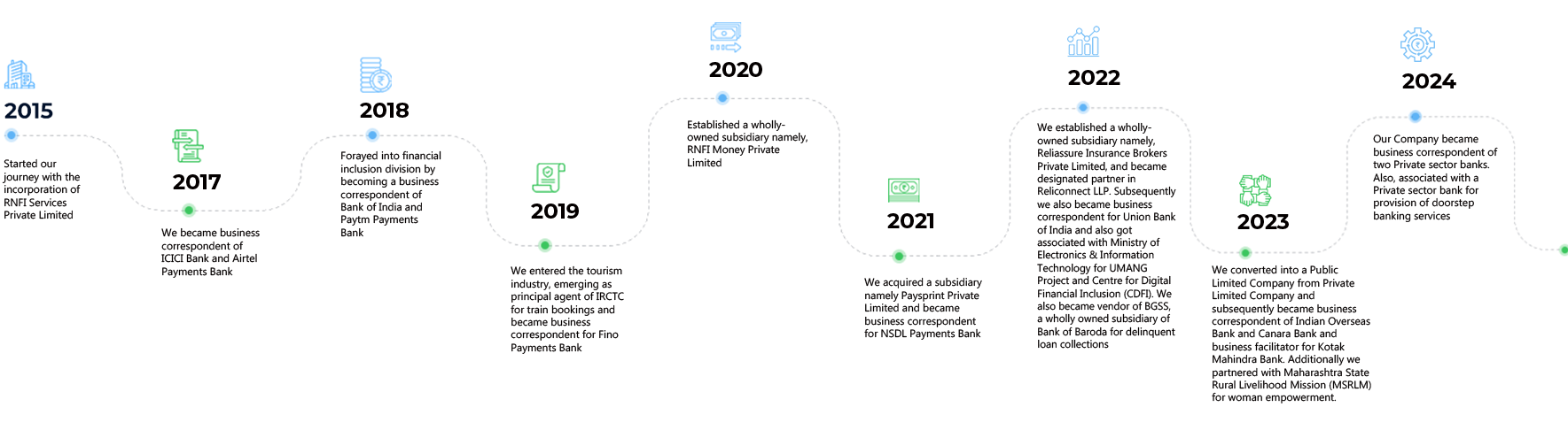 We established a wholly-owned subsidiary namely, Reliassure Insurance Brokers Private Limited, and became designated partner in Reliconnect LLP. Subsequently we also became business correspondent for Union Bank of India and also got associated with Ministry of Electronics & Information Technology for UMANG Project and Centre for Digital Financial Inclusion (CDFI). We also became vendor of BGSS, a wholly owned subsidiary of Bank of Baroda for delinquent loan collections.